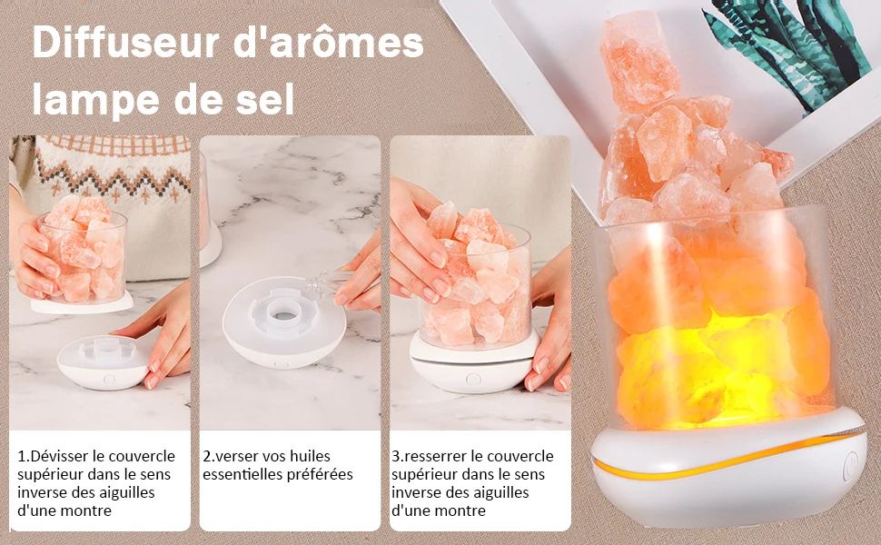 đ„ăNatural Himalayan Salt Lampă: 100% natural Himalayan salt lamps are real crystals of pure rock salt, which may dissolve slightly if not used for a long time or in a humid environment . Please wipe with a dry cloth and keep dry. When lit, the table lamp emits a warm amber glow and the diffuser bedside lamp creates a romantic and charming setting.